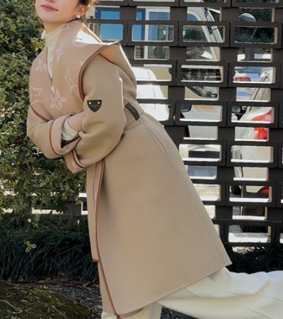 • [홍콩명품.LOUIS VUITTON] 루이비통 25SS 로고 여성 벨티드 더블 페이스 후디드 랩 코트 1A99K3, BM22856, TOM, 레플리카의류,미러급사이트
