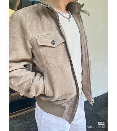 • [홍콩명품.TOM FORD] 톰포드 25SS 로고 하이넥 레더 가죽 봄버 자켓 (베이지), BM22880, PG, 레플리카의류,미러급사이트