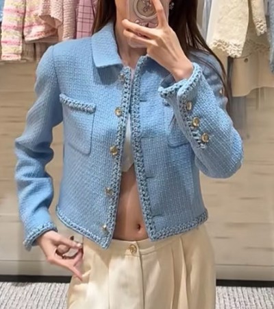 [홍콩명품.CHANEL] 샤넬 25SS 로고 여성 카라 트위드 자켓 (스카이블루), BM22895, PG, 레플리카의류,미러급사이트 > 여성몰