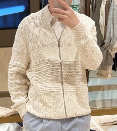 [홍콩명품.Brunello Cucinelli ] 브루넬로 쿠치넬리 25SS 로고 터틀넥 니트 가디건 집업 자켓 (아이보리), BM22977, KB, 레플리카의류,미러급사이트 > 남자의류