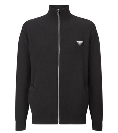 [홍콩명품,PRADA] 프라다 25SS 삼각로고 하이넥 니트 가디건 집업 자켓 (블랙), BM23151, JL, 레플리카의류,미러급사이트 > 남자의류