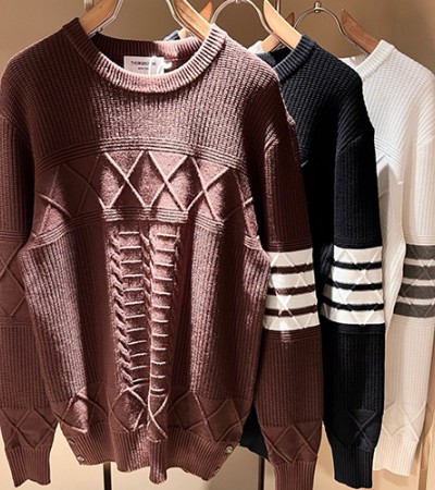 • [홍콩명품.THOME BROWNE] 톰브라운 25SS 로고 4바 니트 스웨터 (3컬러), BM23182, KSM, 레플리카의류,미러급사이트