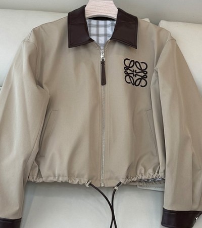 • [홍콩명품.LOEWE] 로에베 25SS 로고 자수 여성 레더 카라 자켓 (베이지), BM23204, KSM, 레플리카의류,미러급사이트