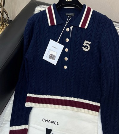 • [홍콩명품.CHANEL] 샤넬 25SS 로고 여성 카라 니트 (네이비), BM23219, KSM, 레플리카의류,미러급사이트