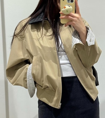 [홍콩명품.BOTTEGA VENETA] 보테가베네타 25SS 로고 여성 인트레치아토 카라 봄버 자켓 (베이지), BM23257, PG, 레플리카의류,미러급사이트 > 여성몰