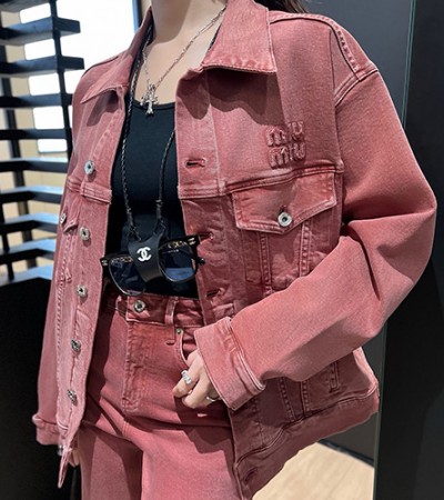 [홍콩명품,MIU MIU] 미우미우 25SS 로고 여성 데님 카라 자켓 (와인), BM23261, PG, 레플리카의류,미러급사이트 > 여성몰
