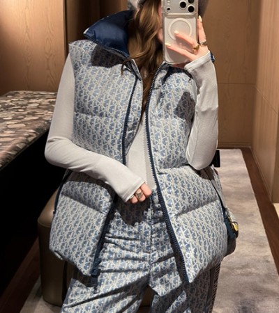 • [홍콩명품,Christian Dior] 디올 25SS 로고 여성 오블리크 벨티드 다운 패딩 조끼 베스트 (블루), BM23282, MC, 레플리카의류,미러급사이트