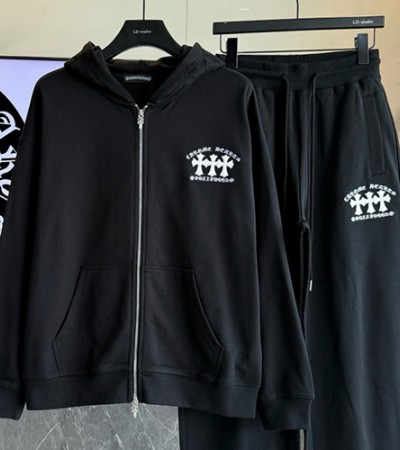 [홍콩명품.Chrome Hearts] 크롬하츠 25SS 로고 트레이닝 후드 집업 자켓 + 조거 팬츠 바지 상하의 세트 (블랙), BM23375, G5, 레플리카의류,미러급사이트 > 남자의류