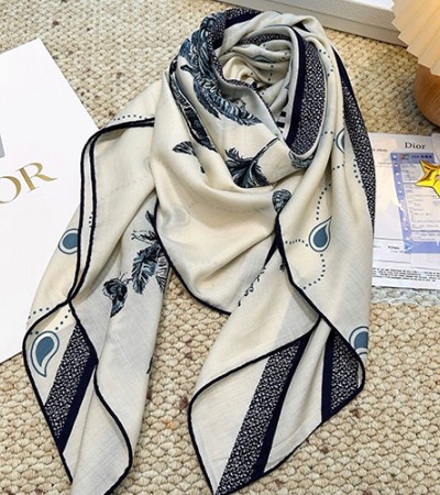 • [홍콩명품,Christian Dior] 디올 25SS 로고 패턴 140-140 실크캐시미어 스카프 머플러 (아이보리), ET3195, 홍콩명품의류,구매대행,온라인명품