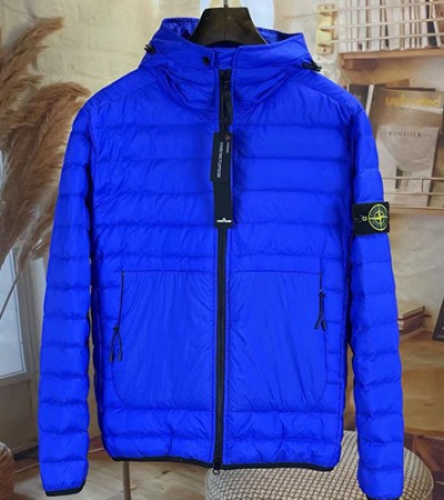 • [홍콩명품.Stone Island] 스톤아일랜드 25SS 로고 탈부착 경량 후드 다운 패딩 자켓 (블루), BM23500, ST1, 레플리카의류,미러급사이트