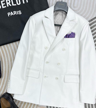 • [홍콩명품.BERLUTI] 벨루티 25SS 로고 레더 가죽 정장 자켓 (화이트), BM23539, KSM, 레플리카의류,미러급사이트