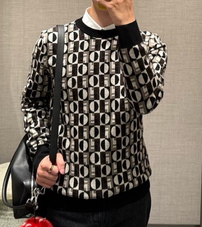 • [홍콩명품,FENDI] 펜디 25SS 로고 패턴 캐시미어 니트 스웨터 (블랙), BM23547, KB, 레플리카의류,미러급사이트