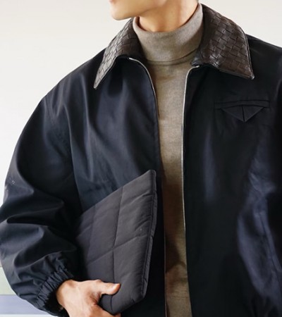 [홍콩명품.BOTTEGA VENETA] 보테가베네타 25SS 로고 인트레치아토 카라 봄버 자켓 (네이비), BM23553, KB, 레플리카의류,미러급사이트 > 남자의류