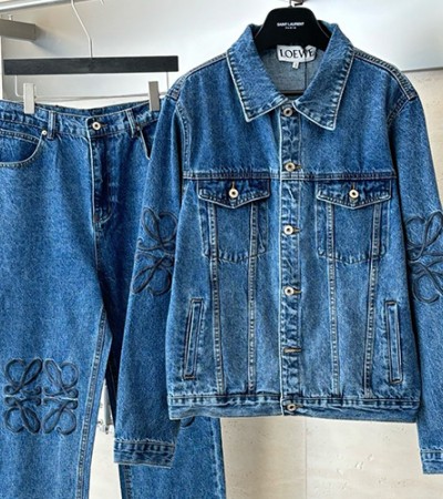[홍콩명품.LOEWE] 로에베 25SS 로고 데님 카라 자켓 + 데님 팬츠 진 청바지 상하의 세트 (블루), BM23560, KB, 레플리카의류,미러급사이트 > 남자의류
