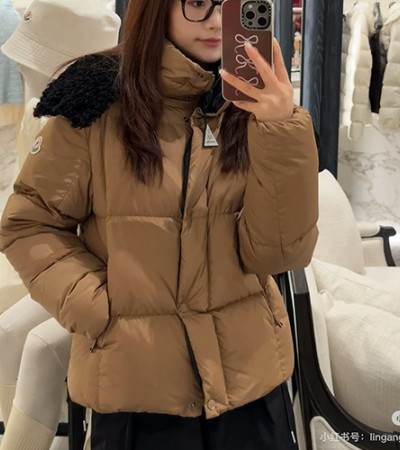 • [홍콩명품.MONCLER] 몽클레어 25SS 로고 여성 후드 다운 패딩 자켓 (카라멜), BM23840, PG, 레플리카의류,미러급사이트