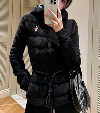 • [홍콩명품.MONCLER] 몽클레어 25SS 로고 여성 레이어드 퍼 후드 다운 패딩 자켓 (블랙), BM23879, JL, 레플리카의류,미러급사이트