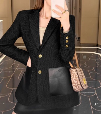• [홍콩명품,FENDI] 펜디 25SS 로고 여성 레더 포켓 정장 수트 자켓 (블랙), BM23908, MC, 레플리카의류,미러급사이트