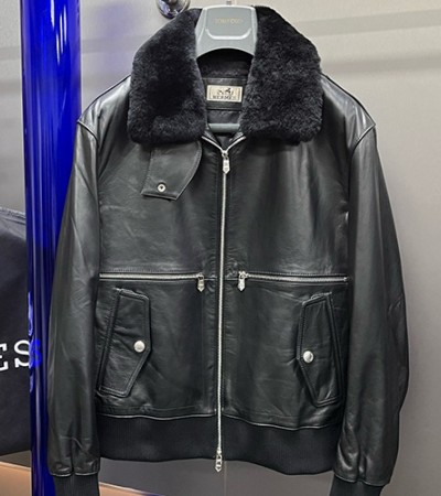 • [홍콩명품.Hermes] 에르메스 25SS 로고 레더 가죽 봄버 자켓 (블랙), BM23977, KSM, 레플리카의류,미러급사이트