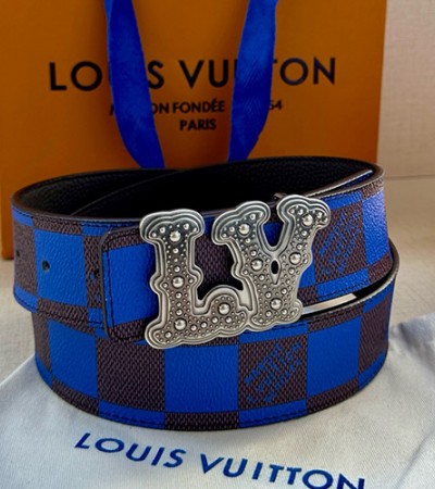 [홍콩명품.LOUIS VUITTON] 루이비통 25SS 로고 LV Initiales 다미에 레더 가죽 리버서블 벨트 (블루-2버클), 4.0cm, BT1502, 명품레플리카,인터넷쇼핑몰,남자명품,해외직구 > 벨트
