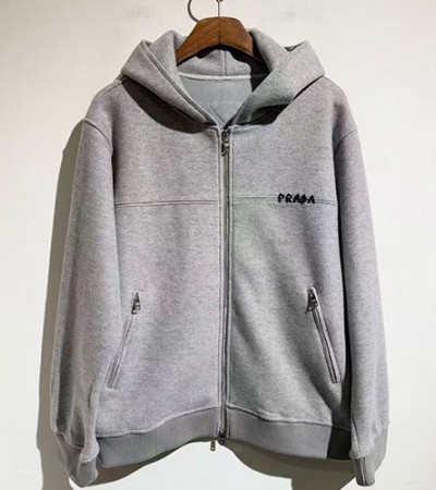 • [홍콩명품,PRADA] 프라다 25SS 로고 울 캐시미어 후드 집업 자켓 (2컬러), BM23982, X2, 레플리카의류,미러급사이트