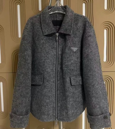 • [홍콩명품,PRADA] 프라다 25SS 삼각로고 캐시미어 카라 집업 자켓 (다크그레이), BM23986, X2, 레플리카의류,미러급사이트