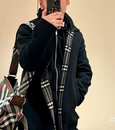 • [홍콩명품.Burberry] 버버리 25SS 로고 체크패턴 리버서블 후드 바람막이 자켓 (카라멜-블랙), BM24011, PG, 레플리카의류,미러급사이트