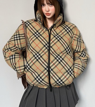 • [홍콩명품.Burberry] 버버리 25SS 로고 여성 체크패턴 후드 다운 패딩 자켓 (베이지), BM24025, MC, 레플리카의류,미러급사이트