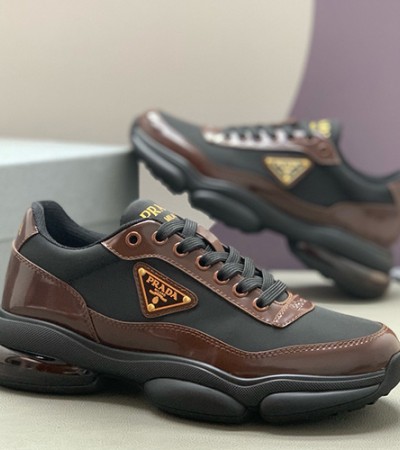 • [홍콩명품,PRADA] 프라다 25SS 삼각로고 레더 가죽 스니커즈 운동화 (브라운-블랙), SE5904, PMD, 명품스니커즈,운동화,구두,로퍼,하이탑,신발