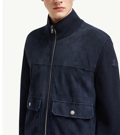 • [홍콩명품.MONCLER] 몽클레어 25SS 로고 터틀넥 레이어드 레더 가죽 봄버 자켓 (네이비), BM24073, PG, 레플리카의류,미러급사이트