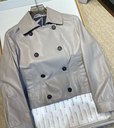 [홍콩명품.Brunello Cucinelli ] 브루넬로 쿠치넬리 25SS 로고 여성 레더 가죽 카라 자켓 (그레이), BM24079, PG, 레플리카의류,미러급사이트 요약정보 및 구매