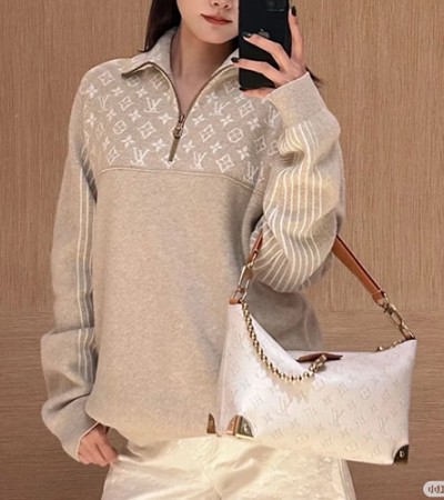 • [홍콩명품.LOUIS VUITTON] 루이비통 25SS 로고 여성 모노그램 하이넥 하프지퍼 캐시미어 니트 스웨터 (베이지), BM24093, TBG, 레플리카의류,미러급사이트