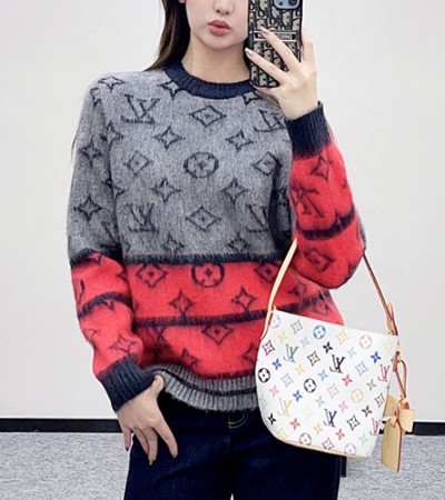 • [홍콩명품.LOUIS VUITTON] 루이비통 25SS 로고 여성 모노그램 모헤어 니트 스웨터 (그레이-레드), BM24094, TBG, 레플리카의류,미러급사이트