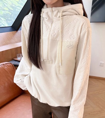 • [홍콩명품.LOUIS VUITTON] 루이비통 25SS 로고 여성 모노그램 하프지퍼 후드 티셔츠 (화이트), BM24144, MC, 레플리카의류,미러급사이트