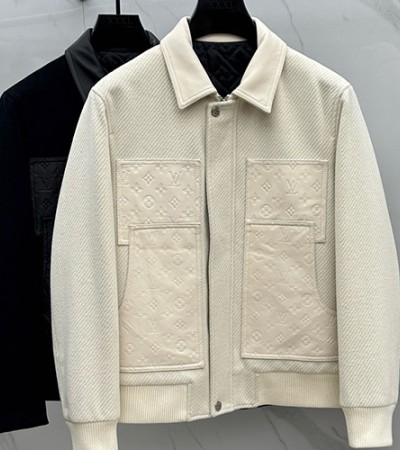 • [홍콩명품.LOUIS VUITTON] 루이비통 25SS 로고 모노그램 레더 가죽 레이어드 카라 자켓 (2컬러), BM24208, HH, 레플리카의류,미러급사이트