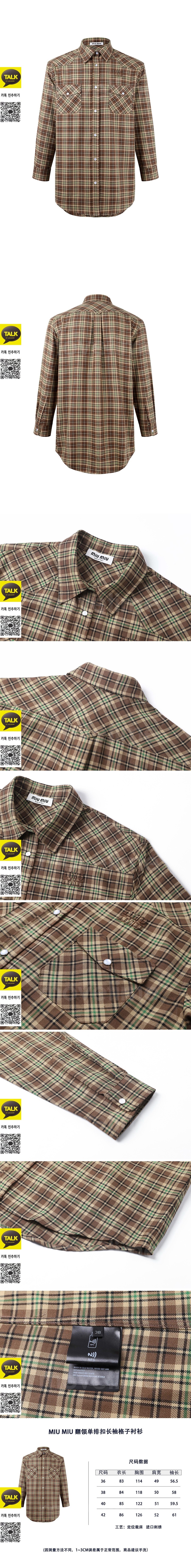 [홍콩명품,MIU MIU] 미우미우 25SS 로고 체크패턴 남방 셔츠 (브라운), BM24248, KK, 레플리카의류,미러급사이트 요약정보 및 구매
