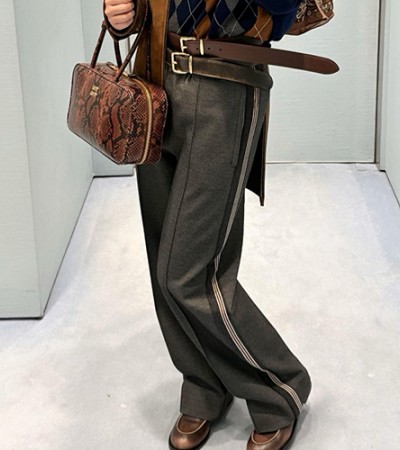 • [홍콩명품,MIU MIU] 미우미우 25SS 로고 자수 조거 팬츠 바지 (그레이), BM24251, KK, 레플리카의류,미러급사이트