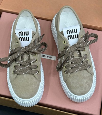 • [홍콩명품,MIU MIU] 미우미우 25SS 로고 여성 레더 가죽 스니커즈 운동화 (2컬러), SE5981, GHS, 명품스니커즈,운동화,구두,로퍼,하이탑,신발