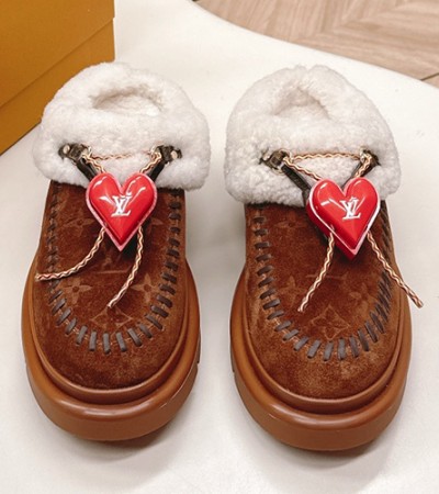 • [홍콩명품.LOUIS VUITTON] 루이비통 25SS 로고 여성 시어링 하트 장식 레더 가죽 뮬 슬리퍼 (3컬러), SE5986, GHS, 명품스니커즈,운동화,구두,로퍼,하이탑,신발