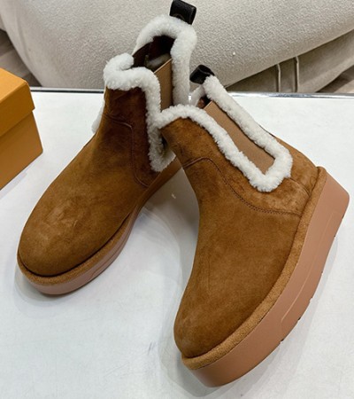 • [홍콩명품.LOUIS VUITTON] 루이비통 25SS 로고 여성 시어링 레더 가죽 부츠 (브라운), SE5991, GHS, 명품스니커즈,운동화,구두,로퍼,하이탑,신발