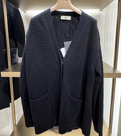 • [홍콩명품,FENDI] 펜디 25SS 로고 패턴 V넥 니트 가디건 (블랙), BM24283, JL, 레플리카의류,미러급사이트