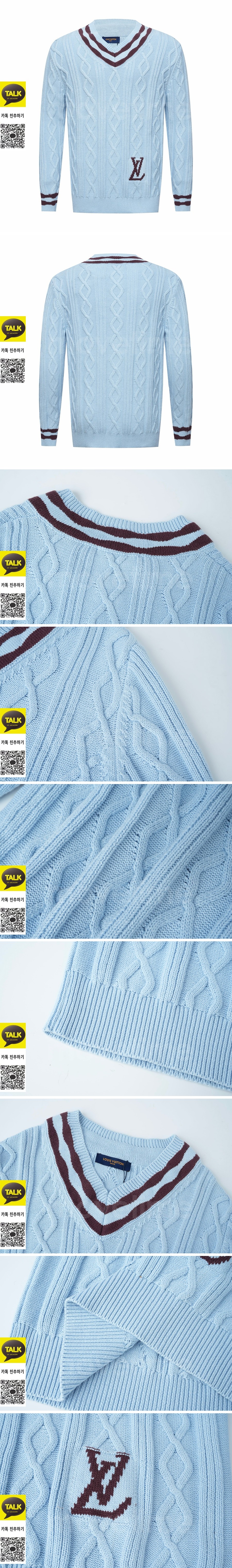 • [홍콩명품.LOUIS VUITTON] 루이비통 26SS 로고 Tyler V넥 니트 스웨터 1AFPYY (스카이블루), BM24366, 레플리카의류,미러급사이트