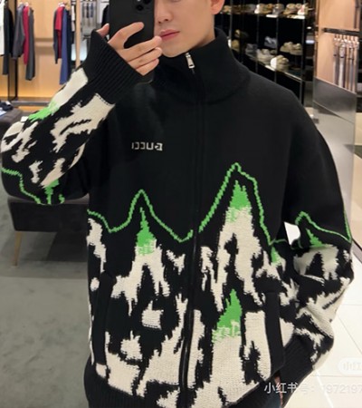 [홍콩명품.Gucci] 구찌 26SS 로고 패턴 하이넥 집업 니트 가디건 자켓 (블랙), BM24424, KB, 레플리카의류,미러급사이트 > 남자의류