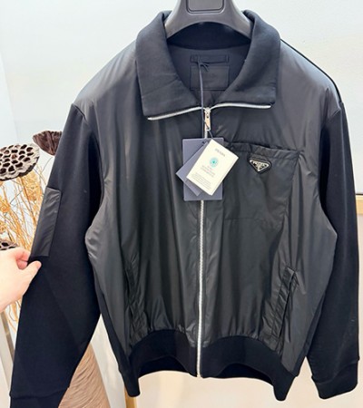 [홍콩명품,PRADA] 프라다 26SS 삼각로고 나일론 카라 봄버 자켓 (블랙), BM24511, YS, 레플리카의류,미러급사이트 > 남자의류