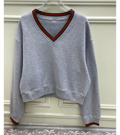 • [홍콩명품.Gucci] 구찌 26SS 로고 여성 V넥 맨투맨 티셔츠 (그레이), BM24537, MC, 레플리카의류,미러급사이트