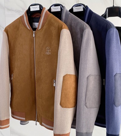 • [홍콩명품.Brunello Cucinelli ] 브루넬로 쿠치넬리 26SS 로고 레더 가죽 다운 패딩 봄버 자켓 (3컬러), BM24641, HH, 레플리카의류,미러급사이트