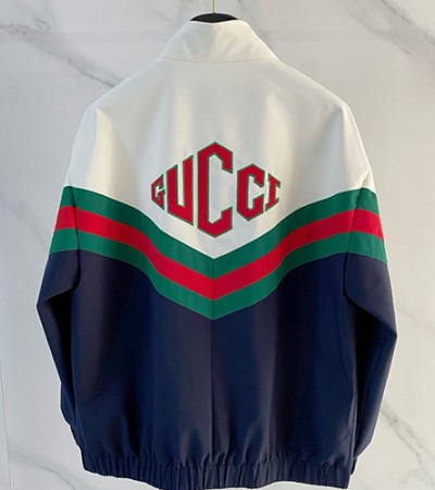 • [홍콩명품.Gucci] 구찌 26SS 로고 터틀넥 봄버 자켓 (아이보리-네이비), BM24697, 레플리카의류,미러급사이트