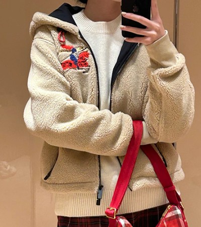[홍콩명품.Burberry] 버버리 26SS 로고 자수 플리스 후드 집업 자켓 (베이지), BM24715, KB, 레플리카의류,미러급사이트 > 여성몰