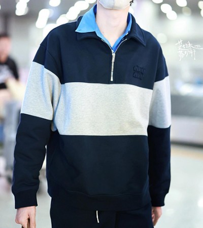[홍콩명품,MIU MIU] 미우미우 26SS 로고 하프지퍼 카라 맨투맨 티셔츠 (네이비-그레이), BM24791, S1F, 레플리카의류,미러급사이트 > 남자의류