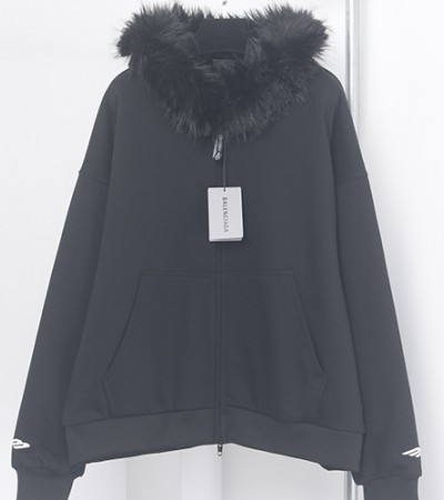 • [가격문의][홍콩명품.BALENCIAGA] 발렌시아가 26SS 로고 자수 퍼 후드 집업 자켓 (블랙), BM24938, JL, 레플리카의류,미러급사이트