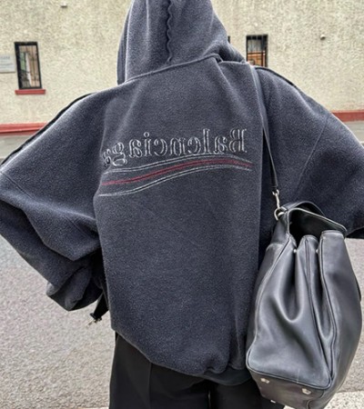• [가격문의][홍콩명품.BALENCIAGA] 발렌시아가 26SS 로고 웨이브 플리스 후드 집업 자켓 (다크그레이), BM24940, JL, 레플리카의류,미러급사이트